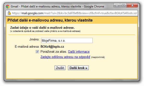 3. Jako e-mailovou adresu zadejte <ID-vaší-datové-schránky>@ispis.cz